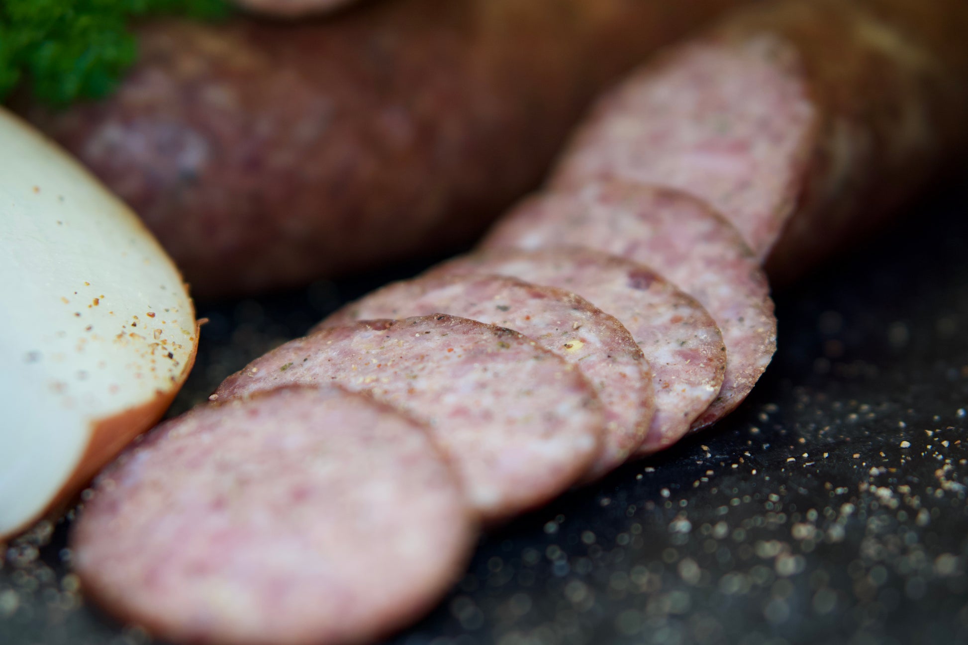 Schweinefleisch 97 %, Gewürze, Konservierungsstoff: Nitritpökelsalz (Kochsalz, Konservierungstoff E250), Stabilisator: Natriumdiphoshat, Antioxidationsmittel: Ascorbinsäure (Vitamin C)